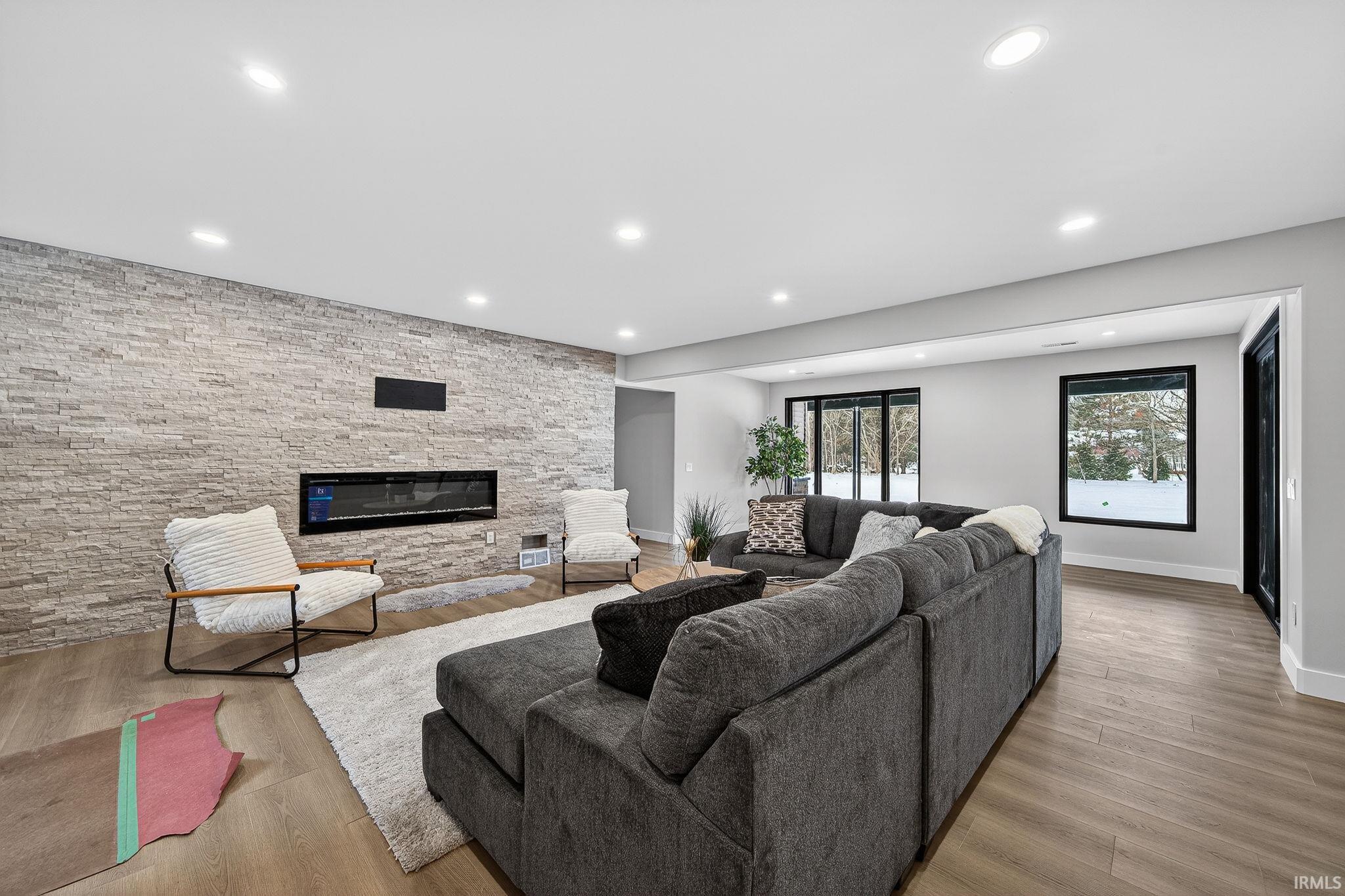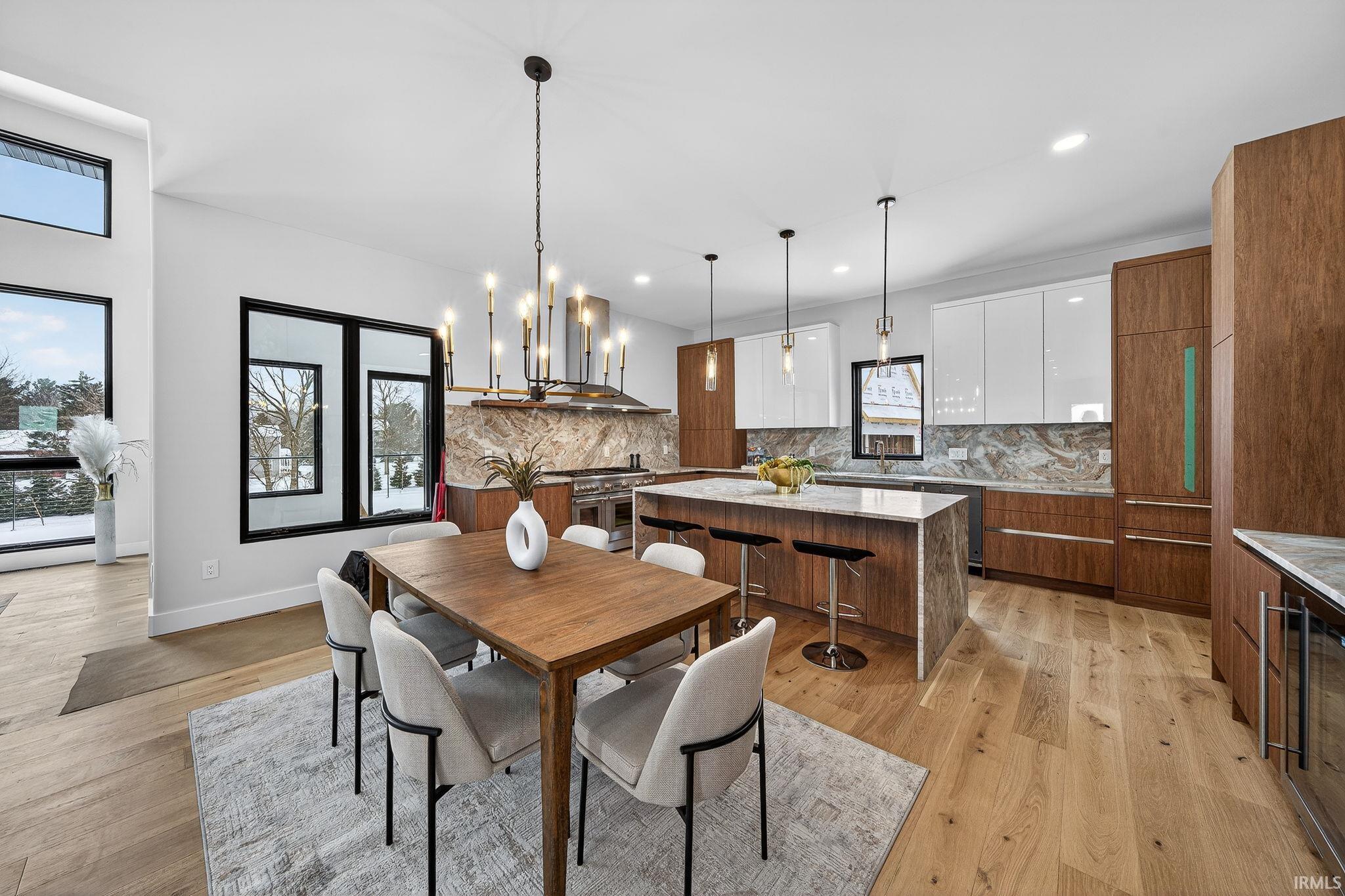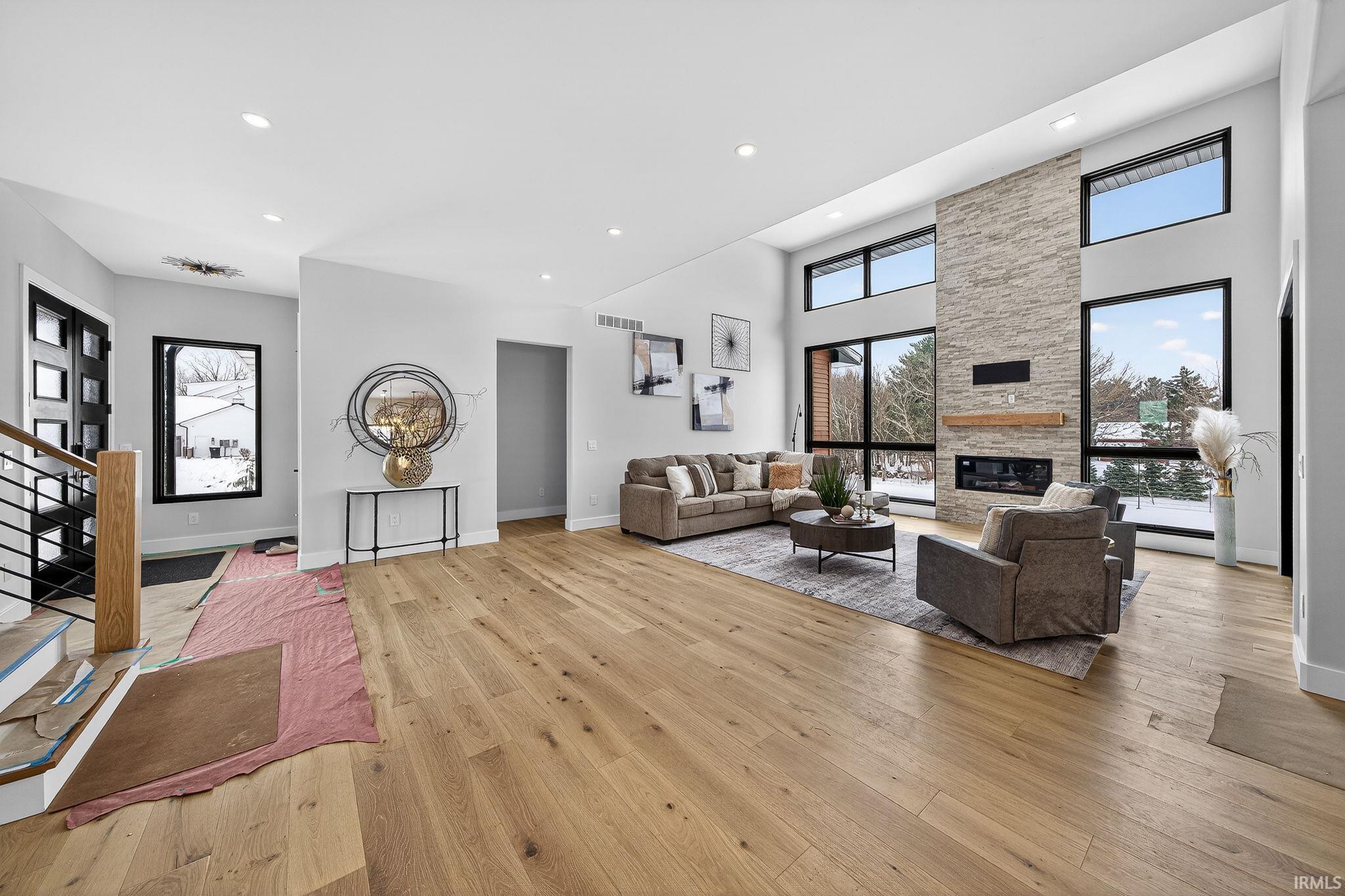 *OPEN HOUSE SAT and Sun 1/3 and 1/4 FROM 2-4 PM! *Enjoy a fantastic lifestyle in this luxurious modern new construction by Shamrock Builders in Clover Hill! Scandinavian design, in Penn Schools (Northpoint & Discovery), offers approximately 7,030 sq ft with five bedrooms, five full baths, and two half baths, featuring engineered European oak flooring and quartz countertops. The main level features a soaring 23’ great room, split floor plan with a luxurious primary suite, office, and a private guest bedroom with a full bath. Spectacular kitchen with walk-in pantry, leathered granite countertops and island, Thermador appliances, opens to the great room and sunroom: 74x14 composite deck and full patio. Upstairs, there is a loft and two en-suite bedrooms. Finished lower-level walk-out features a family room with a fireplace, a 5th bedroom, a flex room, a workout room, a full bath, and a 1/2 bath. Attached 3-car finished garage. Large back yard ready to put a pool in! Minutes from Granger path, Knollwood CC, toll road, dining, and the University of Notre Dame!