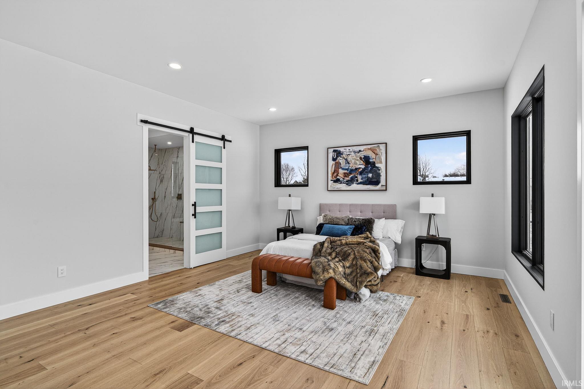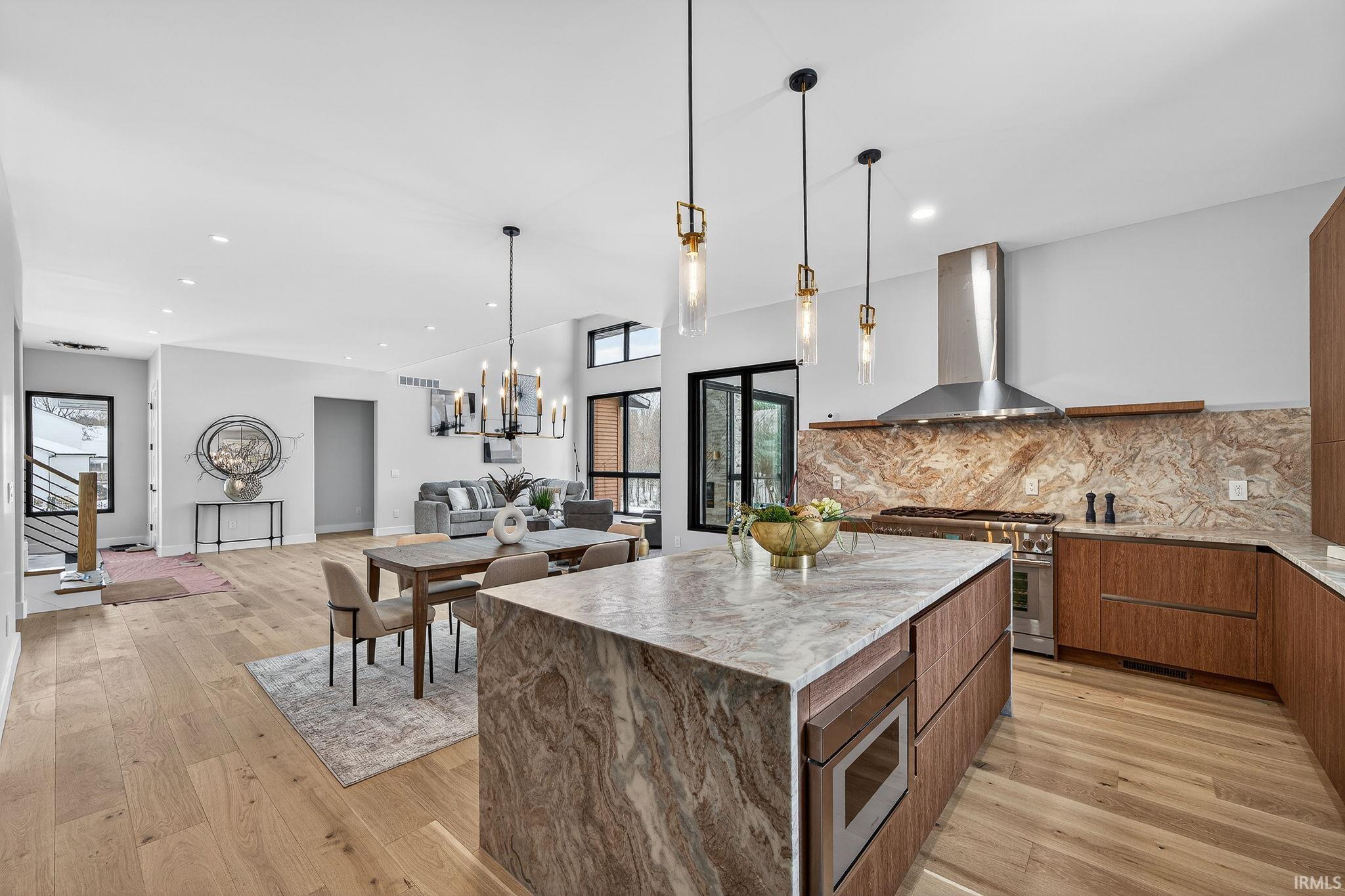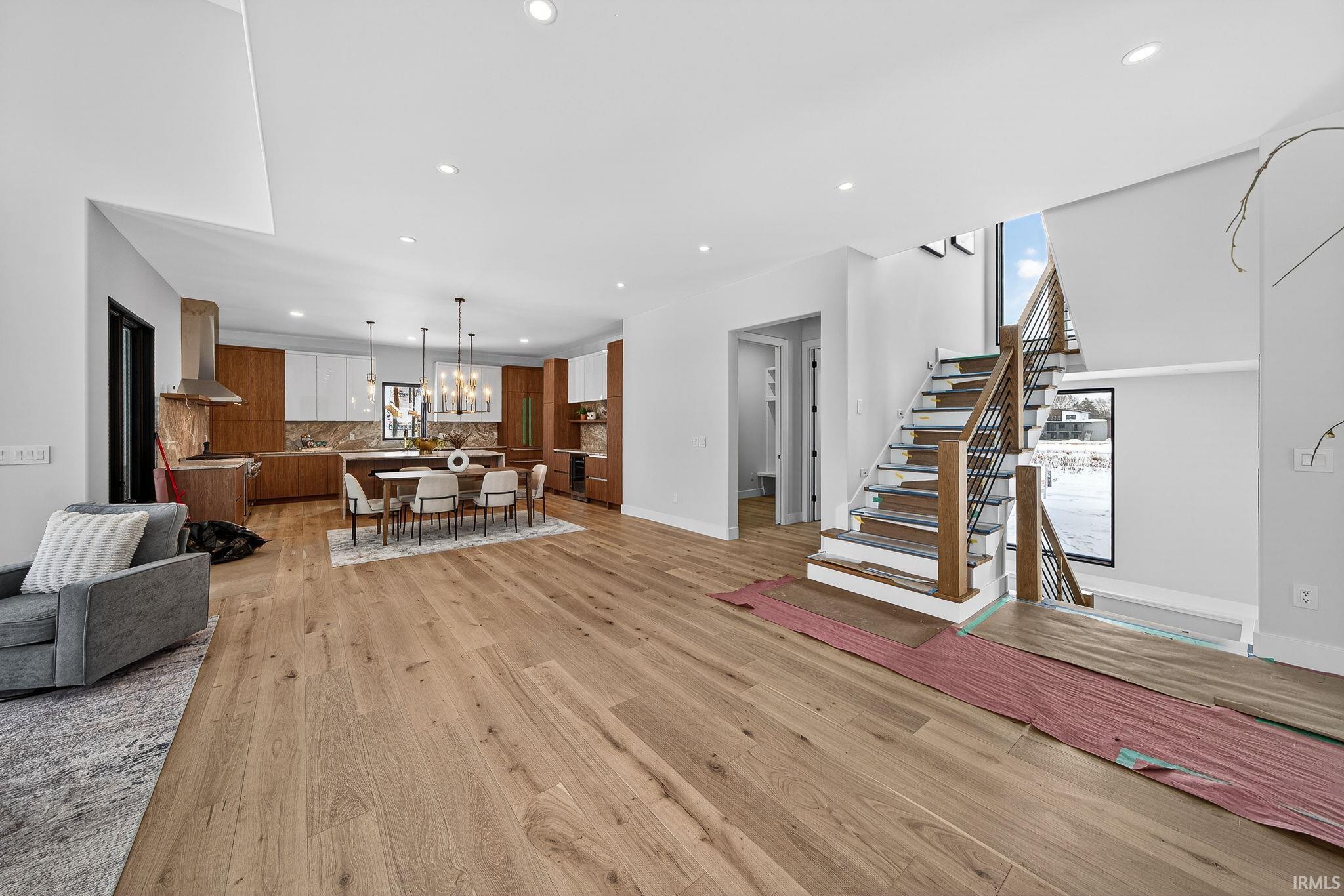 *OPEN HOUSE SAT and Sun 1/3 and 1/4 FROM 2-4 PM! *Enjoy a fantastic lifestyle in this luxurious modern new construction by Shamrock Builders in Clover Hill! Scandinavian design, in Penn Schools (Northpoint & Discovery), offers approximately 7,030 sq ft with five bedrooms, five full baths, and two half baths, featuring engineered European oak flooring and quartz countertops. The main level features a soaring 23’ great room, split floor plan with a luxurious primary suite, office, and a private guest bedroom with a full bath. Spectacular kitchen with walk-in pantry, leathered granite countertops and island, Thermador appliances, opens to the great room and sunroom: 74x14 composite deck and full patio. Upstairs, there is a loft and two en-suite bedrooms. Finished lower-level walk-out features a family room with a fireplace, a 5th bedroom, a flex room, a workout room, a full bath, and a 1/2 bath. Attached 3-car finished garage. Large back yard ready to put a pool in! Minutes from Granger path, Knollwood CC, toll road, dining, and the University of Notre Dame!