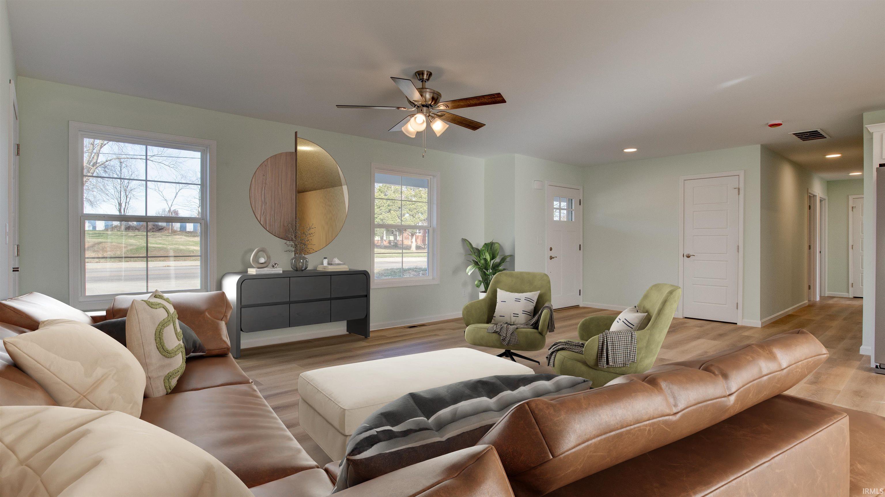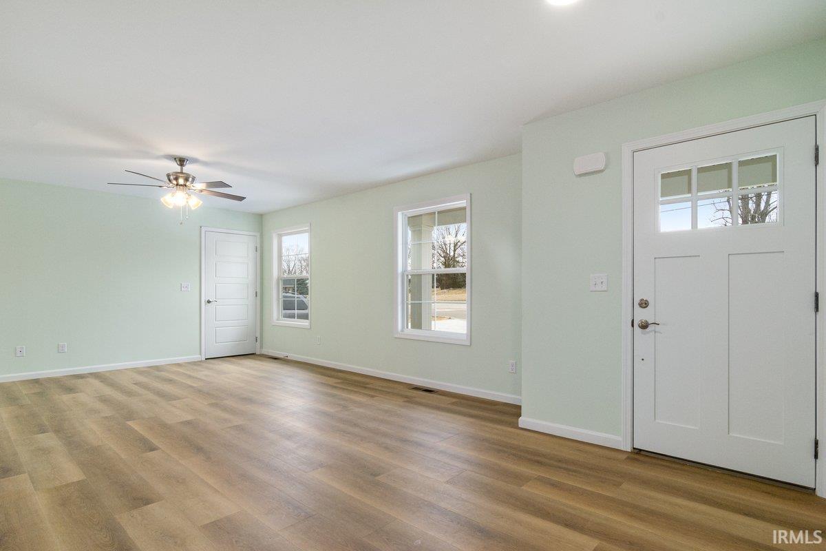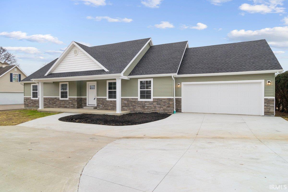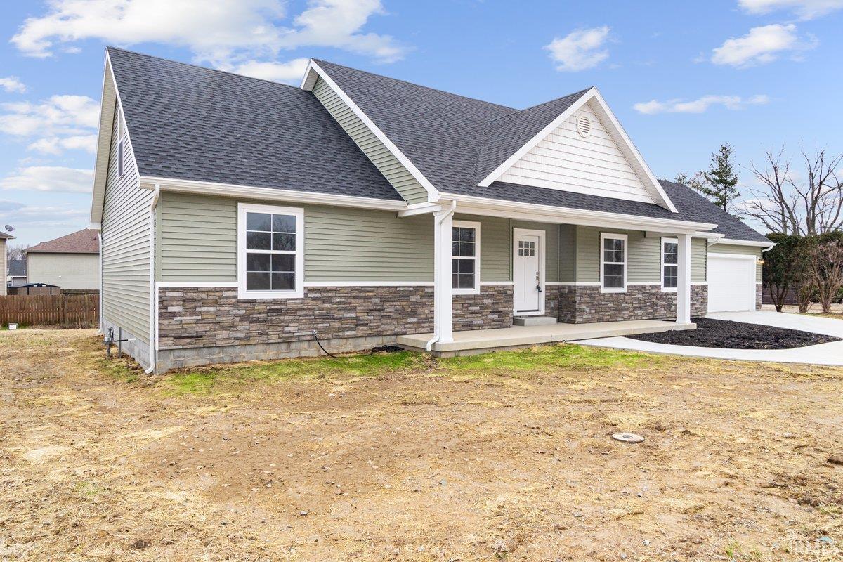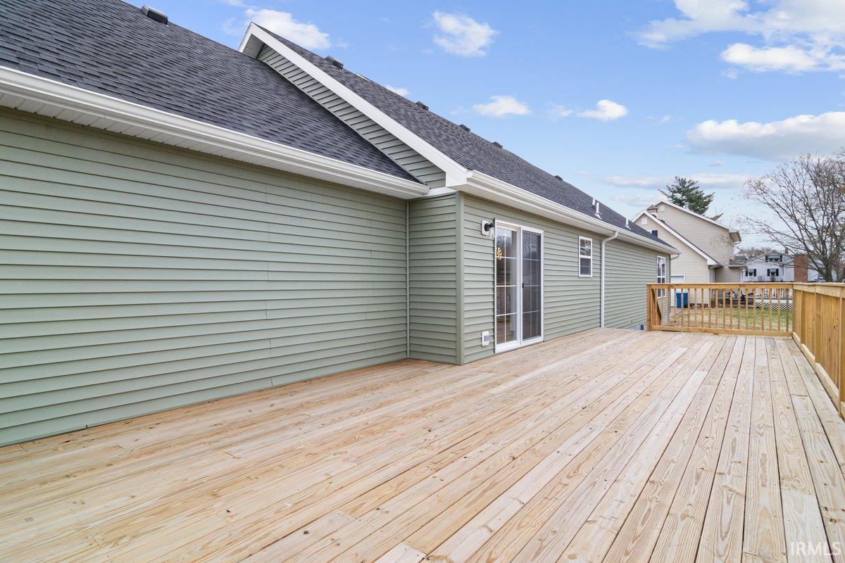 Beautiful New Construction on Evansville's Desirable North Side! If you like to spend your Wednesday nights dining out on Farm 57 while listening to live music, you're going to love this location! Just seconds away from Farm 57 and minutes away from all other city amenities! Featuring 3 bedrooms and 2 bathrooms, this home is thoroughly designed for comfort. The open-concept living area is perfect for gathering with a bright white kitchen and island as the centerpiece, featuring sleek stone countertops and plenty of cabinet space. Upstairs off the living room, a large unfinished area offers endless possibilities for customization-- ideal for a future bonus room, home office, or additional storage. Enjoy the spacious wooden deck overlooking the backyard while you relax or entertain. This home also includes a 2-car garage, providing convenience and storage. With it's modern design and versatile layout, this home is ready to welcome it's first owners!