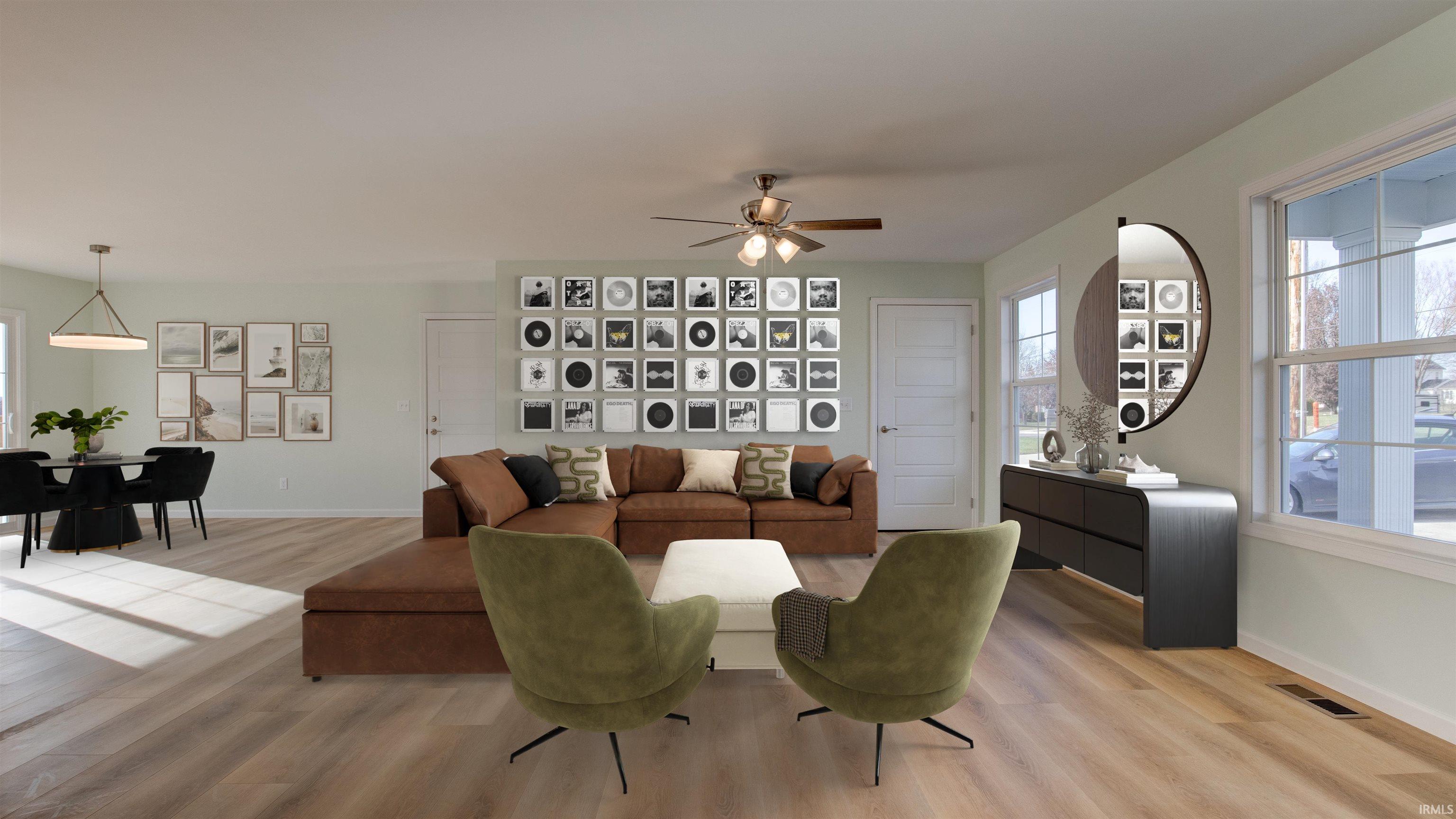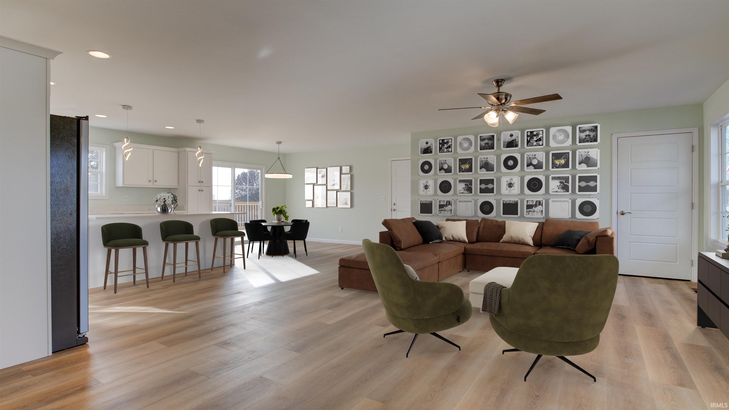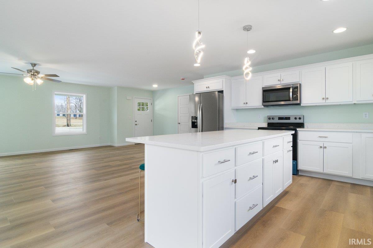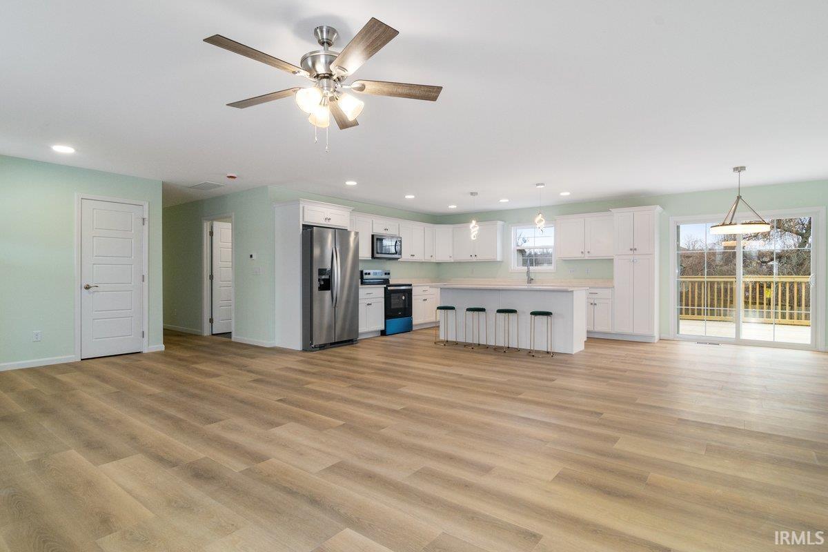 Beautiful New Construction on Evansville's Desirable North Side! If you like to spend your Wednesday nights dining out on Farm 57 while listening to live music, you're going to love this location! Just seconds away from Farm 57 and minutes away from all other city amenities! Featuring 3 bedrooms and 2 bathrooms, this home is thoroughly designed for comfort. The open-concept living area is perfect for gathering with a bright white kitchen and island as the centerpiece, featuring sleek stone countertops and plenty of cabinet space. Upstairs off the living room, a large unfinished area offers endless possibilities for customization-- ideal for a future bonus room, home office, or additional storage. Enjoy the spacious wooden deck overlooking the backyard while you relax or entertain. This home also includes a 2-car garage, providing convenience and storage. With it's modern design and versatile layout, this home is ready to welcome it's first owners!